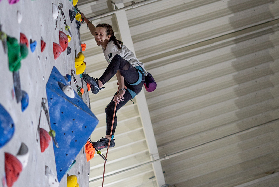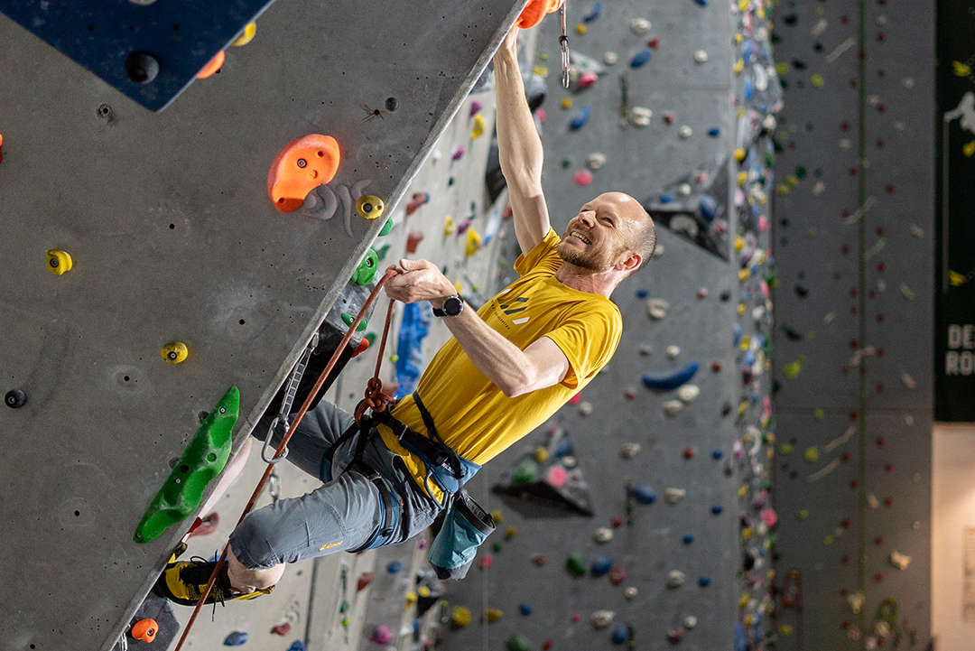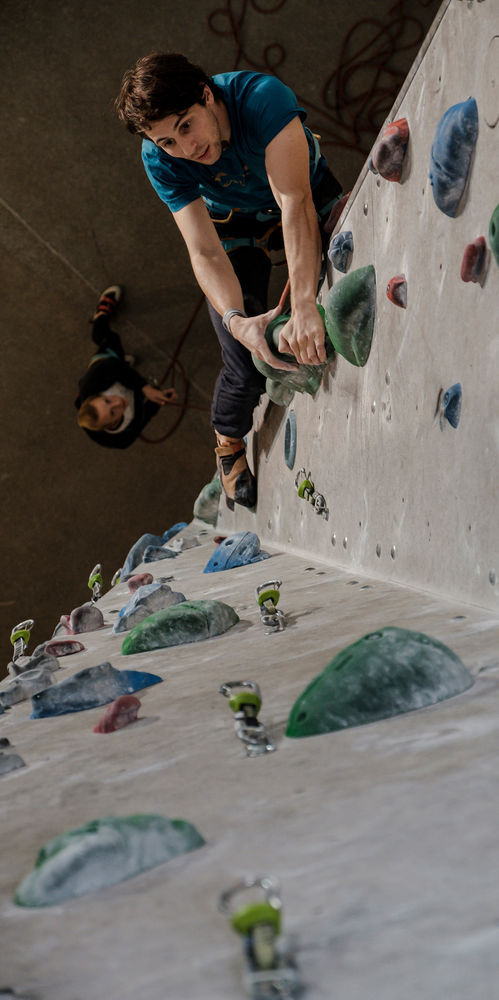 In unserer Kletterhalle findet ihr auf 850 m² Wandfläche knapp 100 Routen mit 15 m Höhe in allen Schwierigkeitsgraden von 3 bis 10 UIAA. Austoben könnt ihr euch sowohl im Topropebereich mit zwei Selbstsicherungsautomaten als auch im großzügigen Vorstiegsbereich.